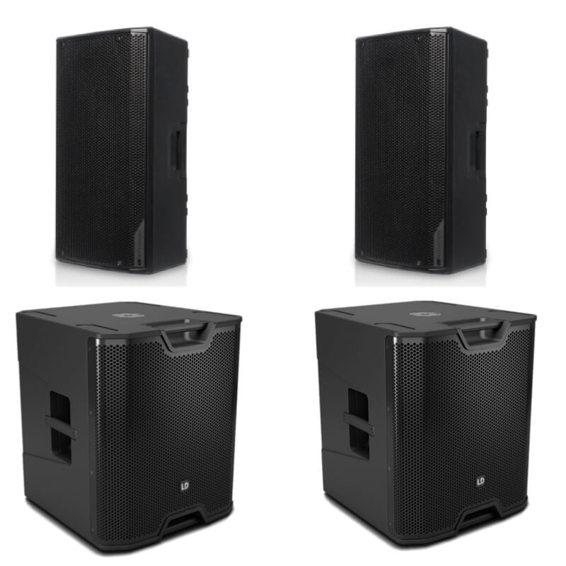 - Op til 150 personer får du 2x højtalere, 2x subwoofer og stativer + kabler dertil. Pakken er lavet til dig som ønsker det ultimative lydbillede og punch i musikken op til 150 personer.
